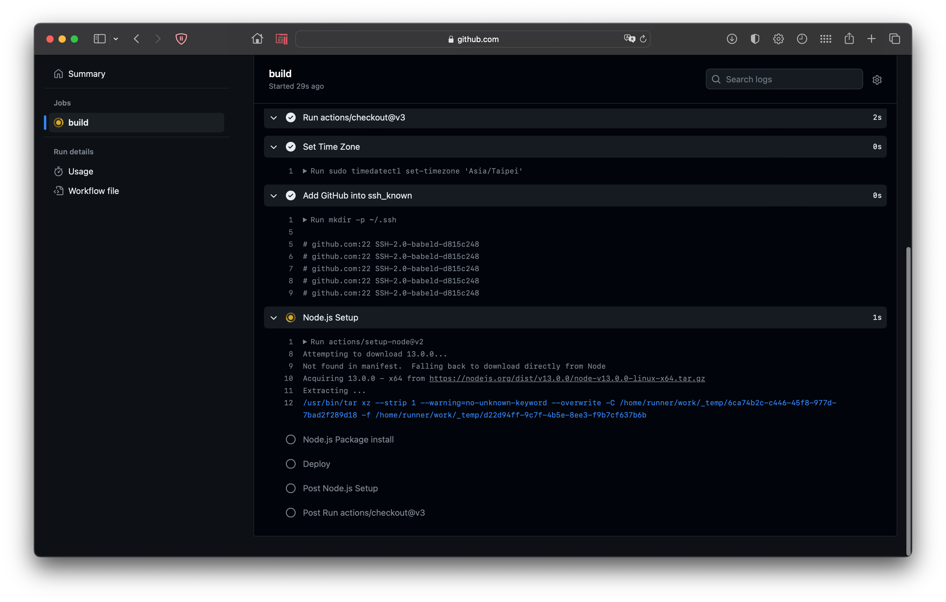 - 設定 Timezone 這些流程都會在 container 上執行,而這些 container 都在國外,為了避免文章日期因為時差跑掉跑掉,這邊把 time zone 設定回 Asia/Taipei